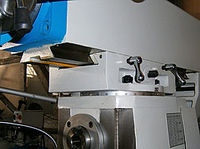 Вертикальный шпиндель фрезерной головки расположен на выдвижном хоботе. Выдвижение хобота осуществляется вручную по направляющей типа «ласточкин хвост». Фрезерная головка может поворачиваться вокруг вертикальной оси. Угол поворота отображается на линейке.