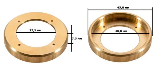 Основные размеры кольца: внешний диаметр – 45,0 мм, внутренний диаметр – 40,0 мм, высота - 7,5 мм, центральное отверстие – 27,5 мм.