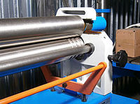 Чугунная станина определяет высокую точность и долговечность станка. Валы изготовлены из высококачественной стали. Зажим листа между приводными валами осуществляется вручную. Также вручную подается вал, формирующий радиусный изгиб заготовки.